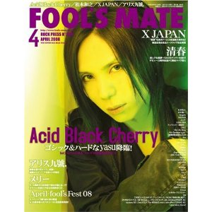 表紙・巻頭特集●Acid Black Cherry/Al『BLACK LIST』リリース・インタヴュー。X JAPAN:YOSHIKI緊急記者会見@渋谷アップルストア~X JAPANトークライヴ@渋谷タワーレコード完全再現!アリス九號.:虎復活後初インタヴュー。メリー:ガラ・パーソナル・インタヴュー。松本和之、INORAN、Angelo、アンティック-珈琲店-、清春、Fool's Fest 08 SPECIAL、サディ、J、lynch.、新興宗教楽団NoGoD、Mix Speaker's,inc.、Dacco、jealkb、LM.C、Kαin、Moi dix Mois、the studs、河村隆一、他。