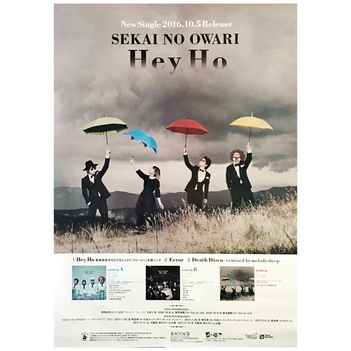 SEKAI NO OWARI(セカオワ) ポスター Hey ho 2016