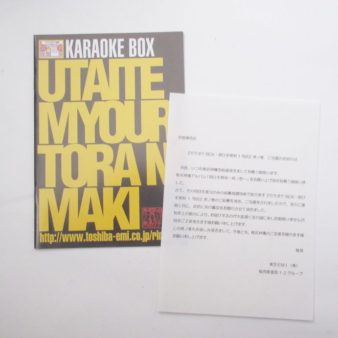 2002年アルバム『唄ひ手冥利~其の壱~』購入者、応募抽選特典非売品です。当選通知書あり。