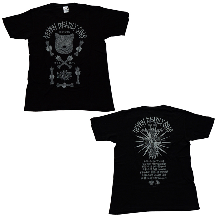 MAN WITH A MISSION(マンウィズ) Seven Deadly Sins TOUR 2015 ~七つの対バン~ Tシャツ ブラック。