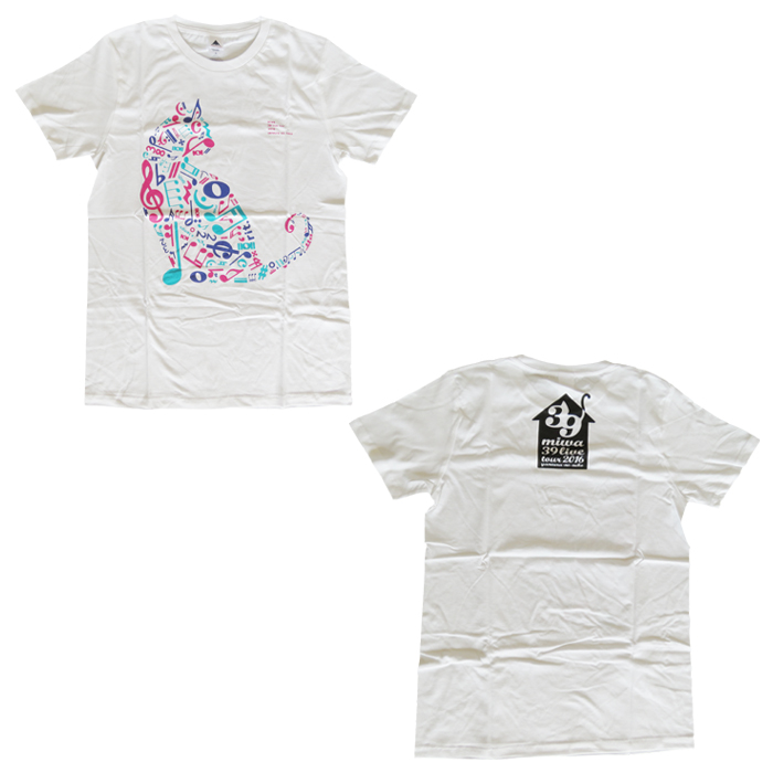 miwa(ミワ) 39 live tour "yaneura-no-neko 2016" Tシャツ ホワイト。