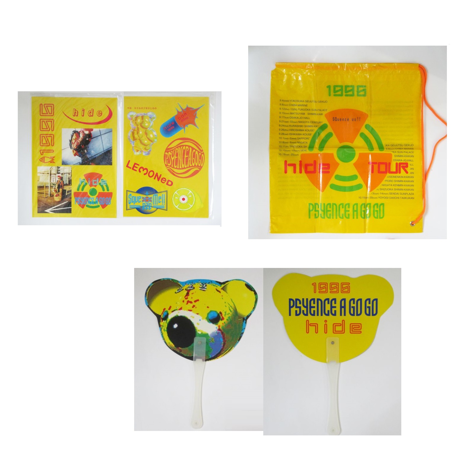 X JAPAN(エックス) hide solo tour PSYENCE A GO GO hide psyence a gogo tour 1996 ステッカー うちわ バッグ セット