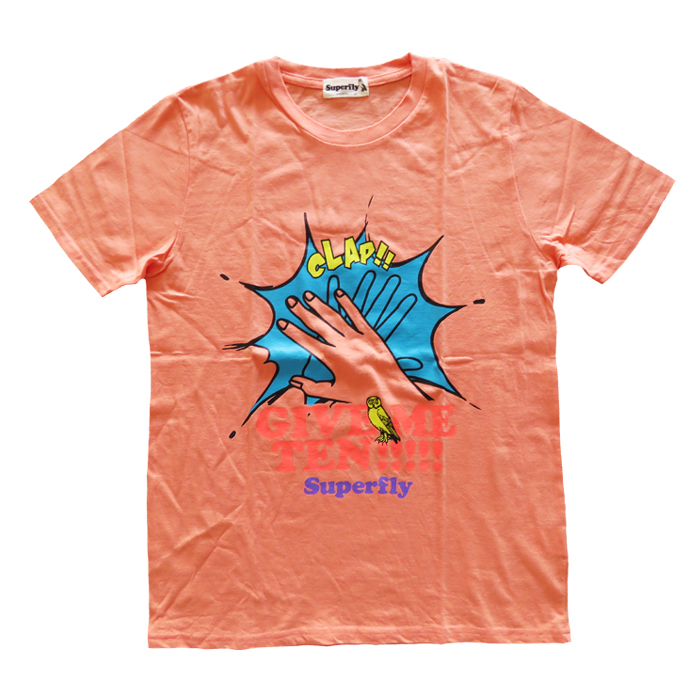 superfly(スーパーフライ) 5th anniversary Super live GIVE ME TEN!!!!! Tシャツ サーモンピンク。