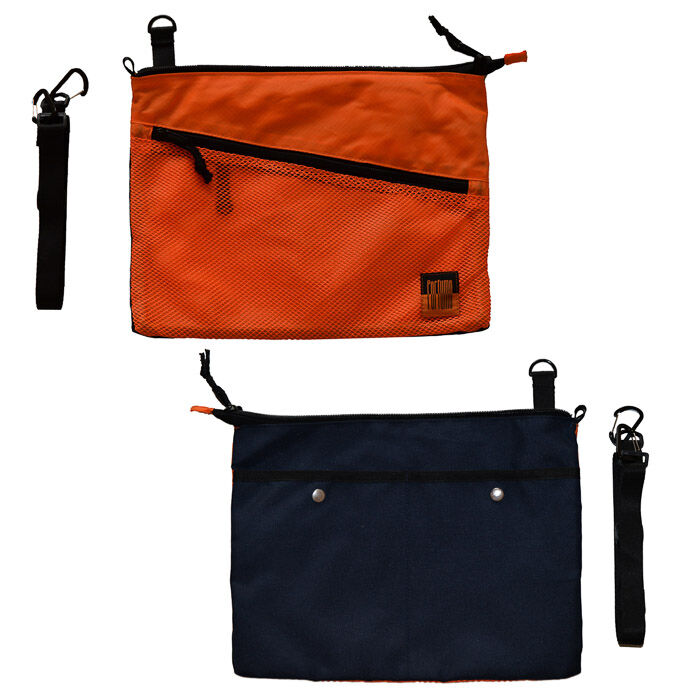 キーホルダーを取り付けられるリングが付いた大きなメッシュポケット等、内側も外側も充実したポケットに、中には取り外し可能なポーチ付きです。ポーチの片面は透明になっており、スマートフォンを入れたままでも操作可能です。
