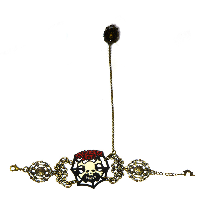 クモの巣にゴシックなモチーフがあなたの仮装を一層華やかにするブレスレット。スカルクモのオリジナルリングが付いた贅沢なアクセサリーは、ハロウィンの夜の宴で目立つには必須アイテム。
