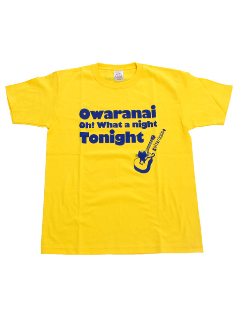 鮮やかなイエローに、ブルーのロゴ+ギターから飛び出ネコのデザインがキュートなツアーTシャツ。