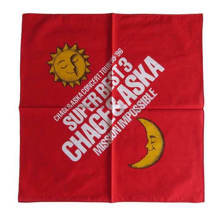 CHAGE&ASKA(チャゲアス) CONCERT TOUR 95-96 SUPER BEST 3 MISSION IMPOSSIBLE バンダナ ハンカチ レッド。