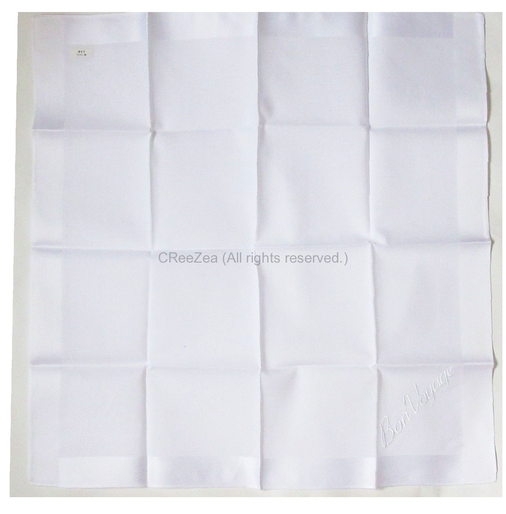 封筒入り。右下に文字刺繍あり。