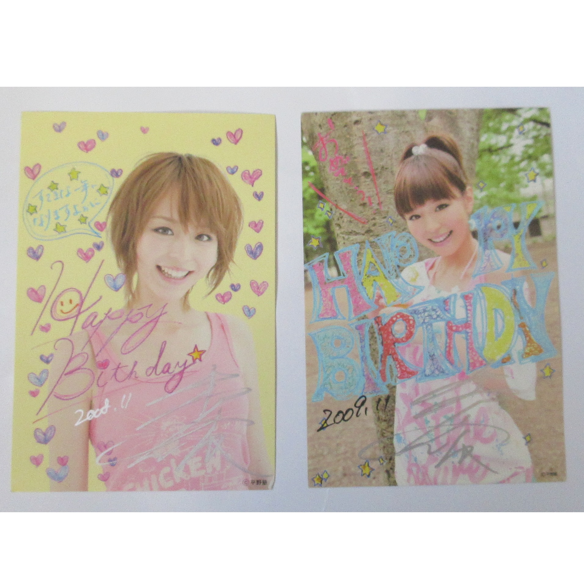 平野綾(あーや) その他 ポストカード 2枚セット 直筆サイン入り 2008-2009。