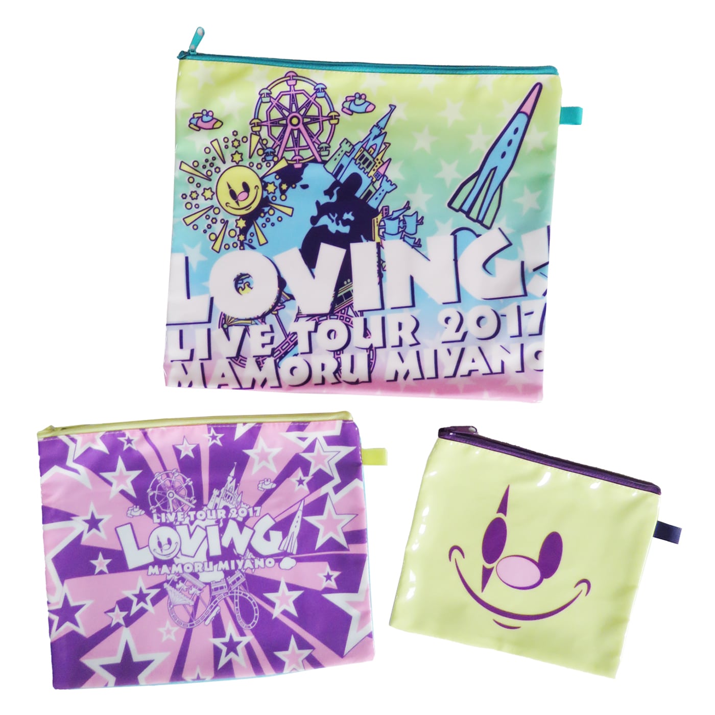宮野真守(マモ) LIVE TOUR 2017 ~LOVING!~ フラットポーチセット 3個。