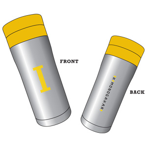 シンプルなシルバーにいきものカラー・イエローでツアーロゴをプリントした水筒です。