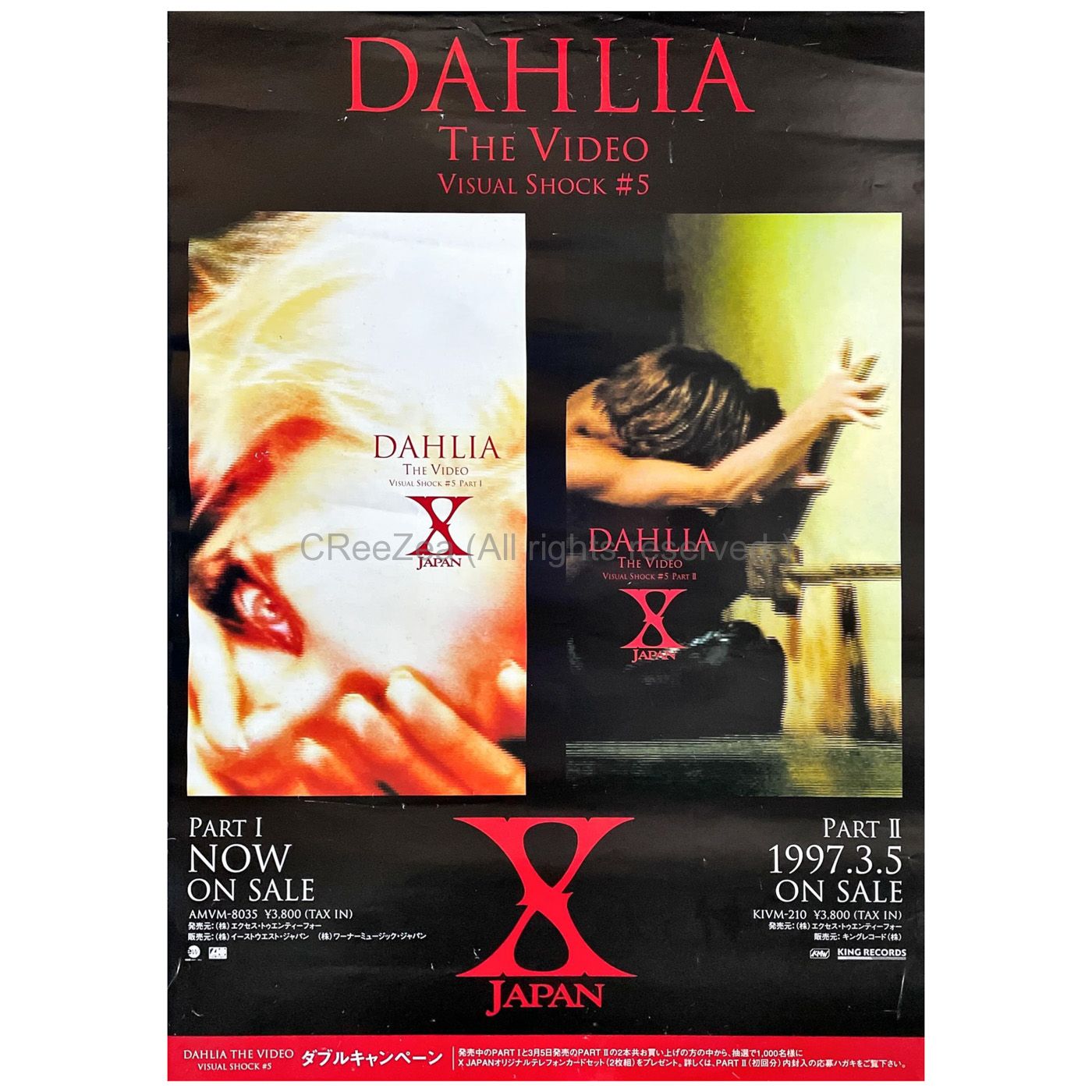 X JAPAN(エックス) ポスター DAHLIA THE VIDEO VISUAL SHOCK #5 PARTI&PARTII 1997。