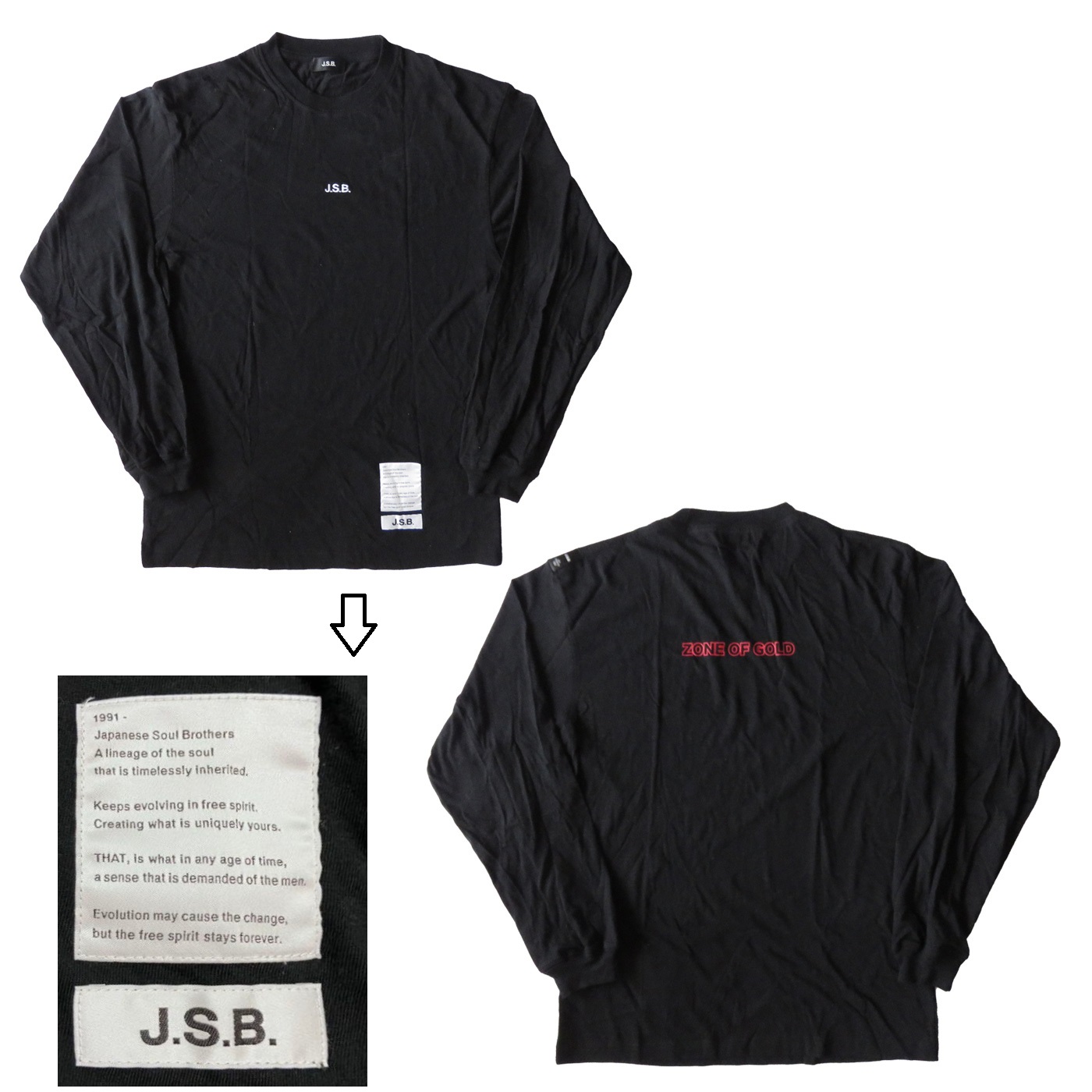 三代目 J Soul Brothers(JSB) 今市隆二 ロングスリーブ Tシャツ J.S.B. ZONE OF GOLD VERTICAL GARAGE。