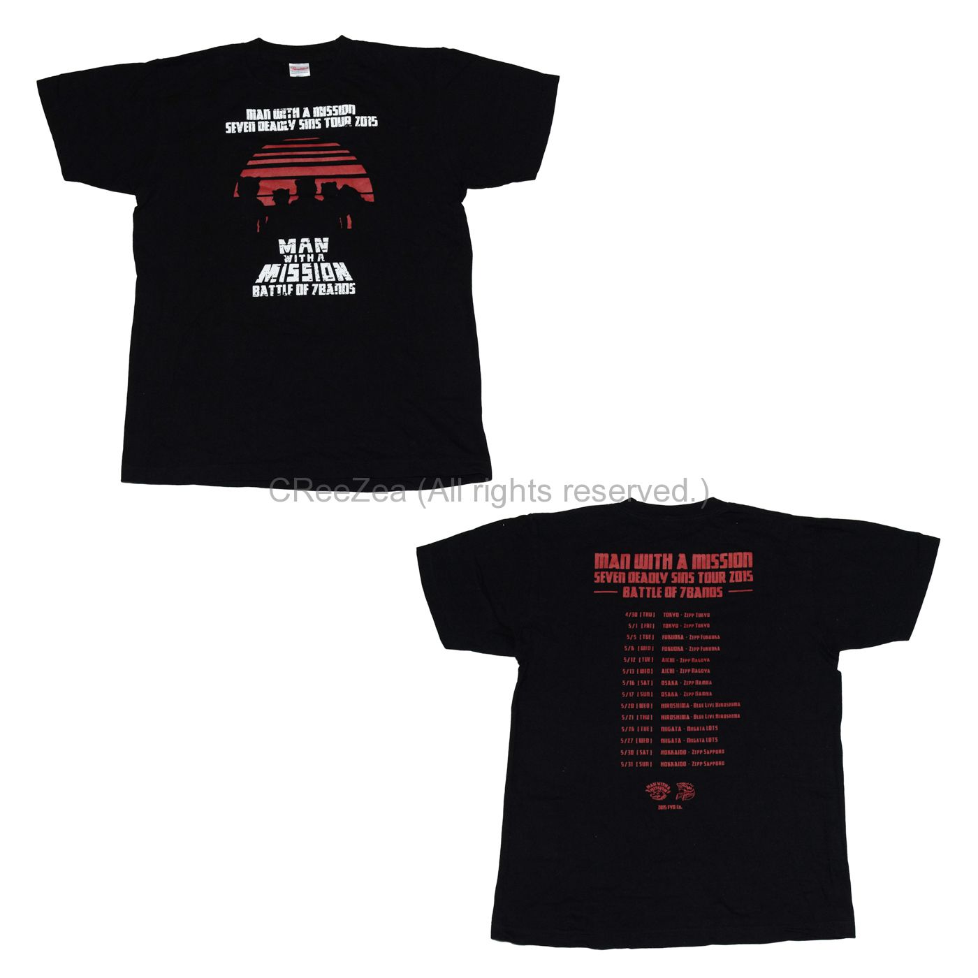 MAN WITH A MISSION(マンウィズ) Seven Deadly Sins TOUR 2015 ~七つの対バン~ Tシャツ ブラック×ホワイト。