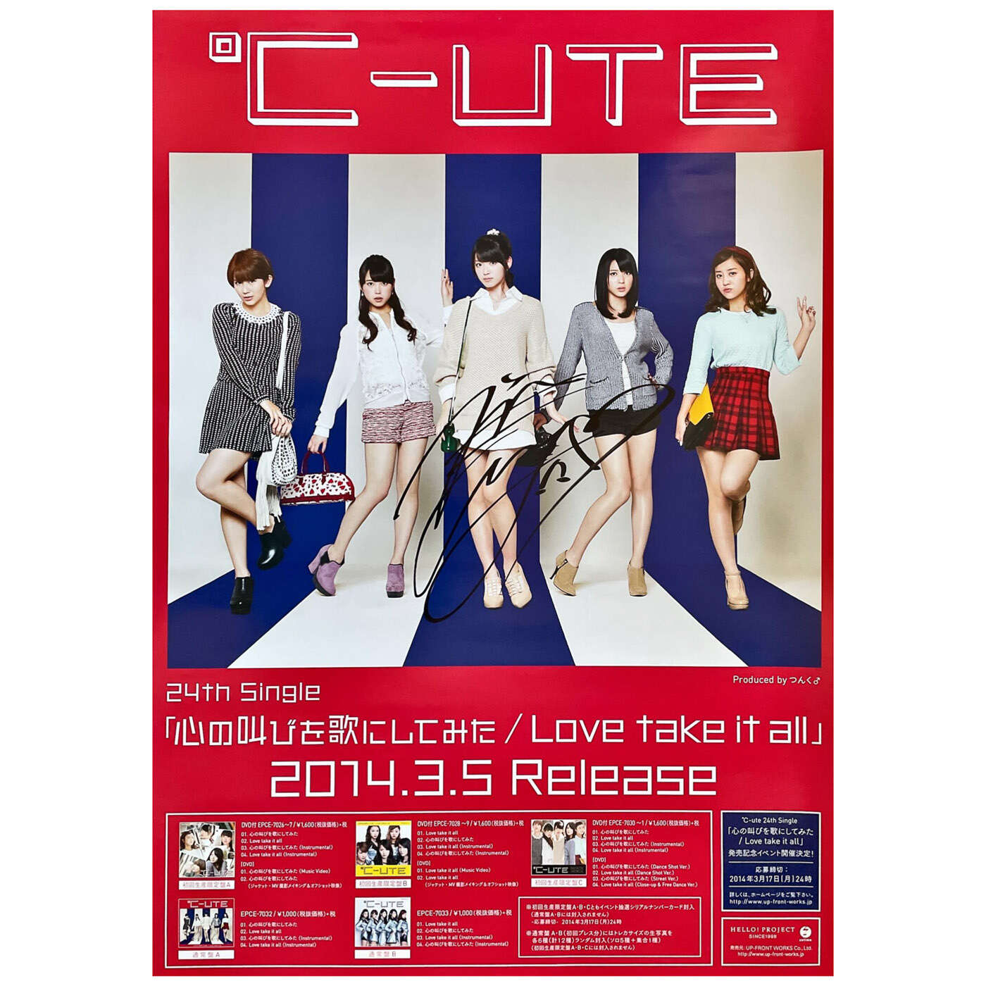 ℃-ute(キュート) ポスター 矢島舞美 直筆サイン入り 心の叫びを歌にしてみた Love take it all 告知。