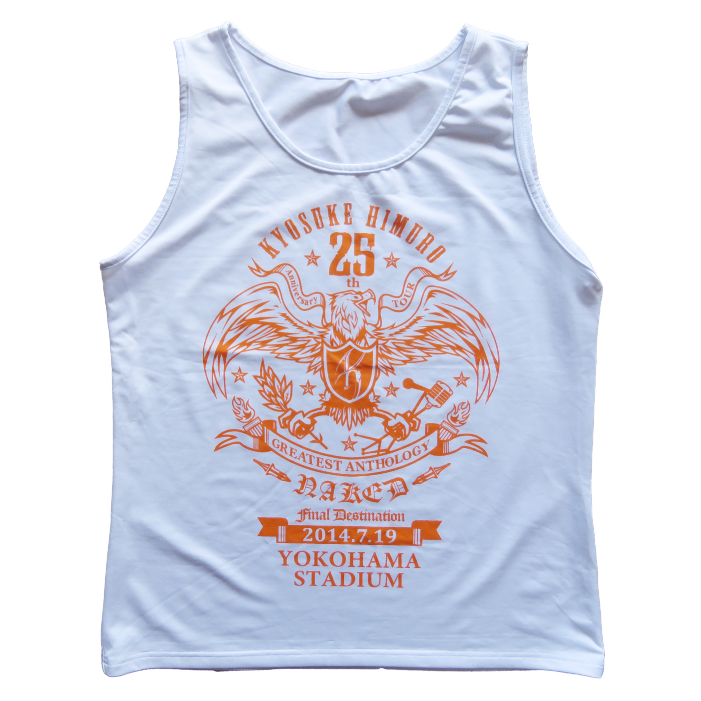 25周年ツアーのファイナルとなる横浜スタジアム2Days公演【25th Anniversary TOUR GREATEST ANTHOLOGY -NAKED- FINAL DESTINATION】来場者に配布されたタンクトップです。6/19白地に橙のロゴ、6/20白地に青のロゴが配布されました。種別:タンクトップ