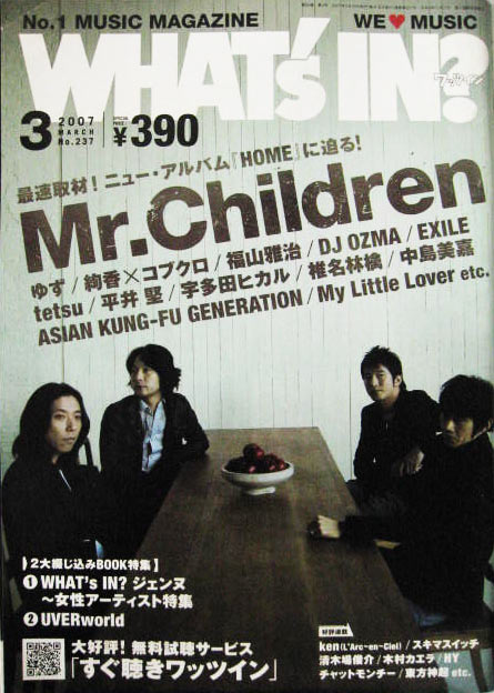 Mr.Children(ミスチル) ワッツイン 2007年03月号 Mr.children表紙。