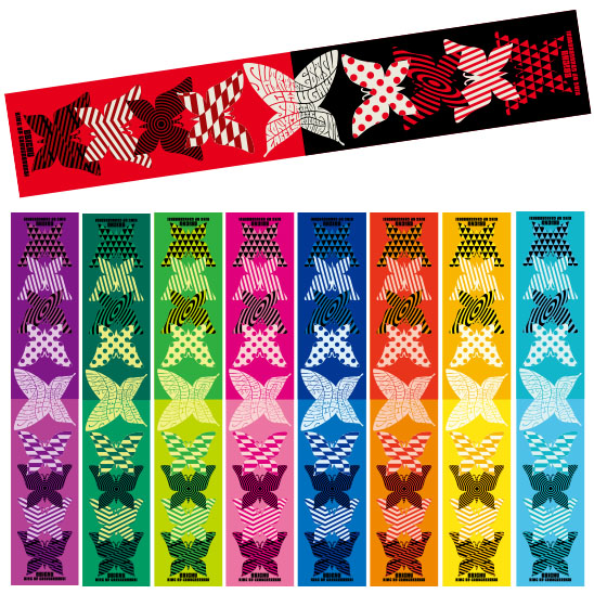 お待たせいたしました。今回のマフラータオルは全9色でカラフルに仕上がっております!!スタイリッシュなちょうちょうデザインに仕上がったマフラータオル・・・