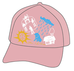 アルバム「HOME」をイメージさせる様々なイラストを天然素材・ジュート(麻の一種)に刺繍したメッシュキャップ。