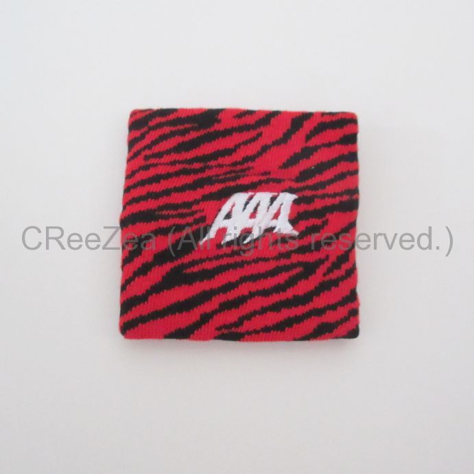 ゼブラ柄に「AAA」刺繍ロゴが入ったリストバンド。