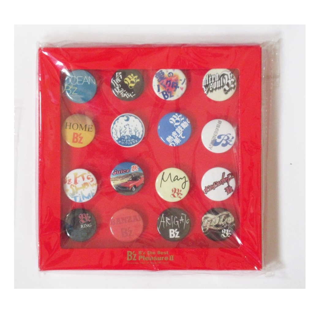 2005年に発売されたベストアルバムPleasure IIの発売を記念して行われた抽選会のグッズです。歴代シングルのロゴの缶バッジ16個セットになります。