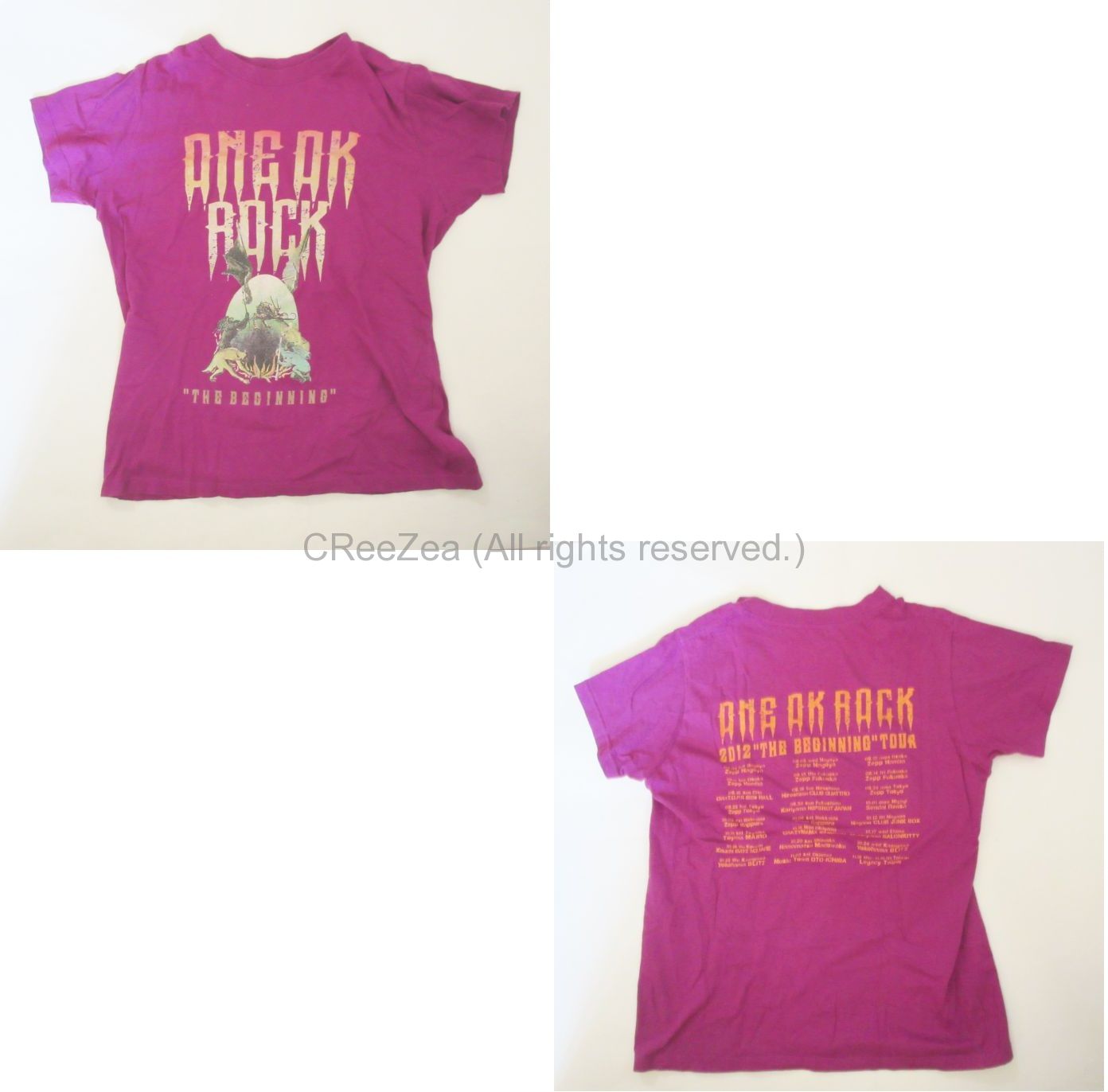 ONE OK ROCK(ワンオク) 2012"The Beginning"TOUR Tシャツ パープル。