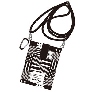 携帯電話やデジカメがすっぽり入るマルチポーチは、汚れが付きにくいポリエステル素材。黒と白のシンプルな色合いの中に、ドットとボーダー柄が入ることでかわいさもプラス!肩から掛けられる革ひもは長さ調節ができて、取り外しも可能!カラビナでバッグやベルトに引っ掛けてもOK!ライブやレジャーのお供に是非。