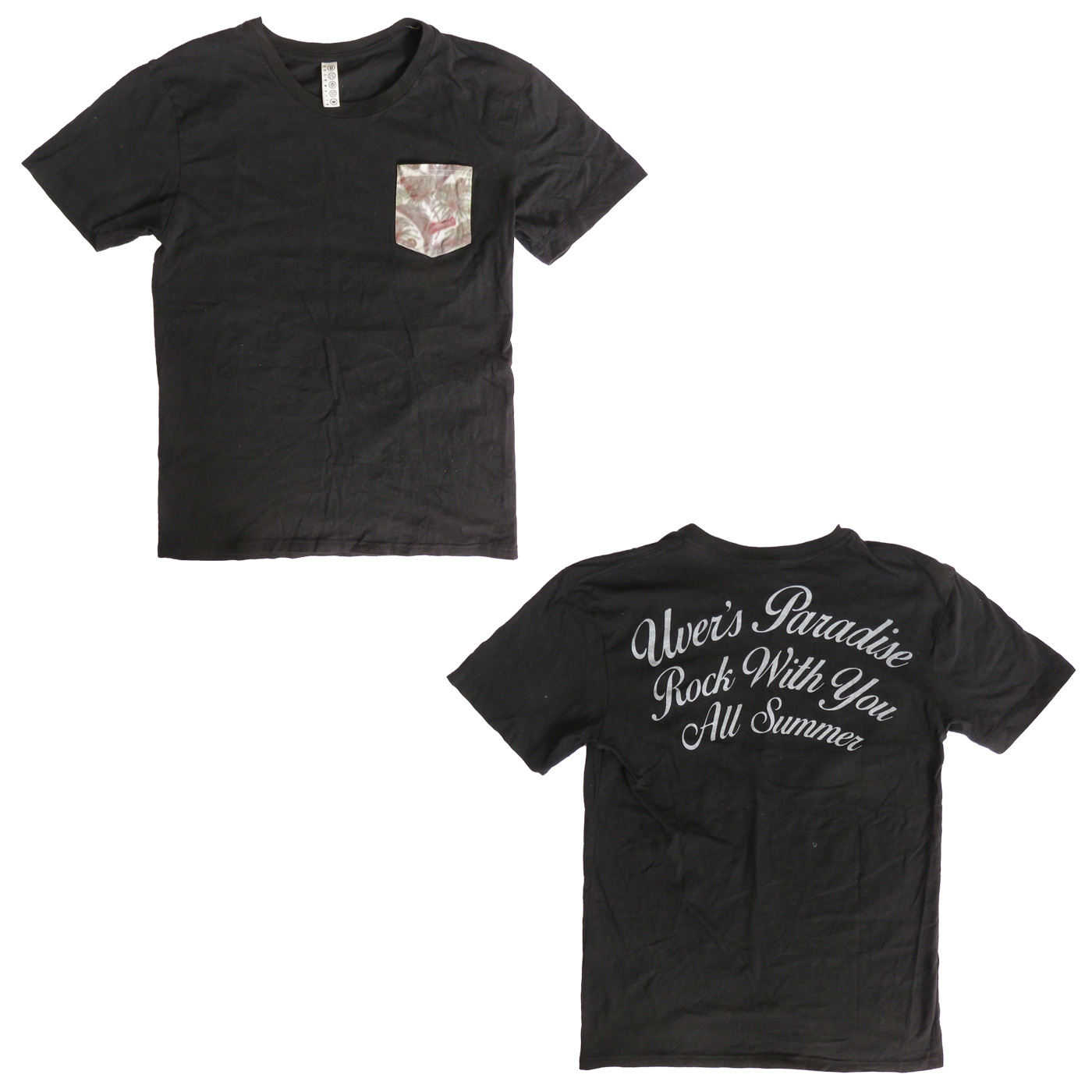 UVERworld(ウーバーワールド) ROCK IN JAPAN FESTIVAL 2015 ポケットTシャツ(ハイビスカス/ブラック)。