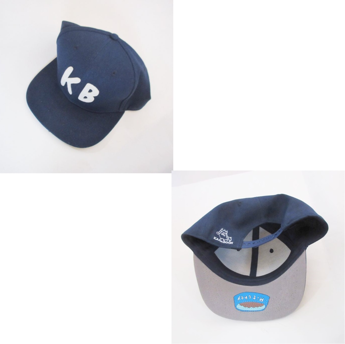 フェルトワッペンの「KB」がポイントのキャップ!ツバの内側にはこっそりぼくのえさがあります。