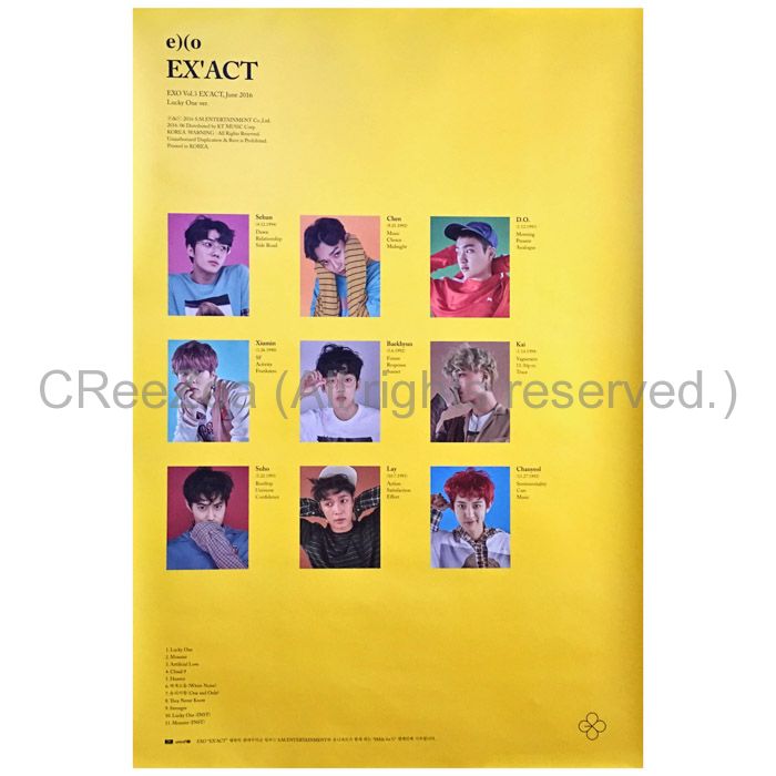 EXO(エクソ) ポスター 特典ポスター(ex'act)黄。