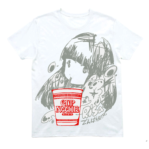 (Tシャツ表面にカップヌードルイラストを印刷、Tシャツ裏面にでんぱ組イラストを印刷したリバーシブルティーシャツになります。)