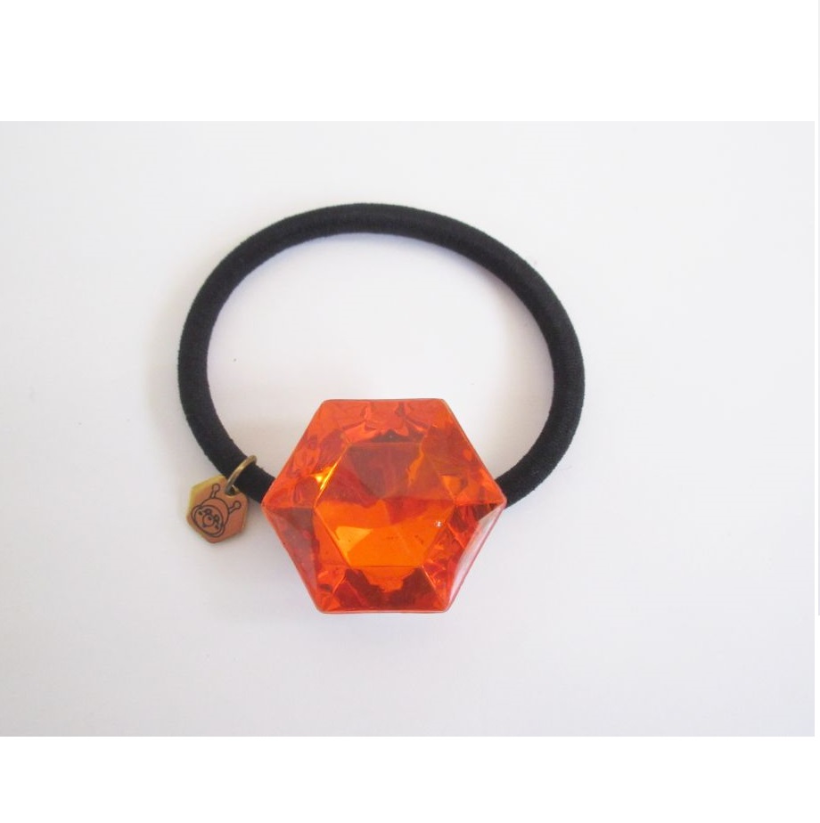 6角形のアクリル石付属のヘアゴム。BEEパンダの顔チャーム付属。
