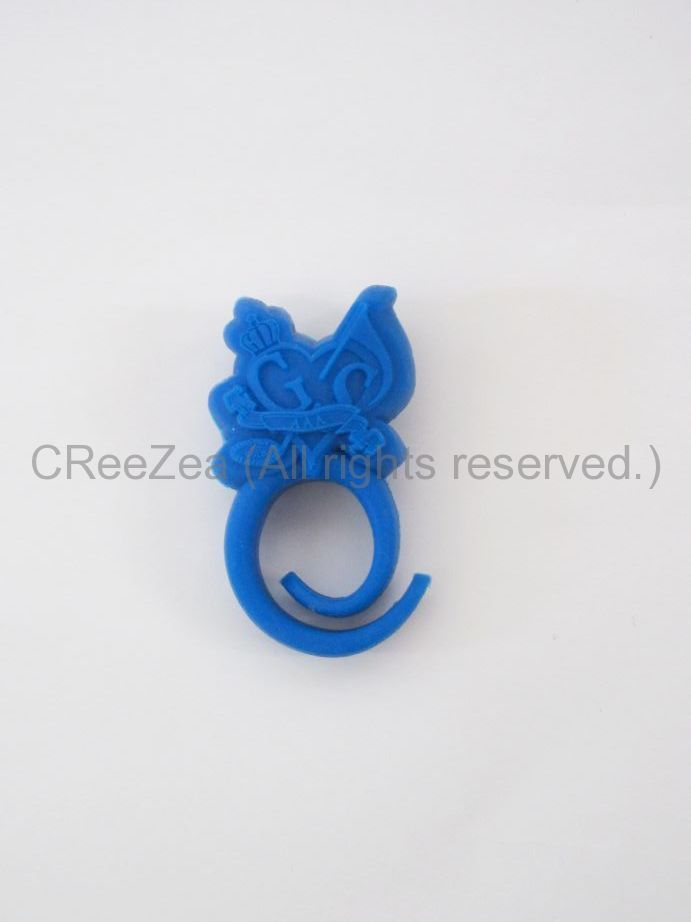 “AAA ARENA TOUR 2014 -Gold Symphony-”(9~10月公演)ツアー会場グッズ売り場にて、1回のご購入につきお買い上げ税込5,000円ごとにプレゼントされた「GSえ~シリコンリング(全7種)」です。